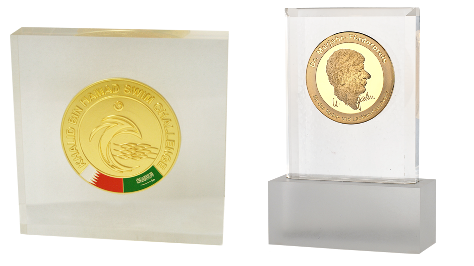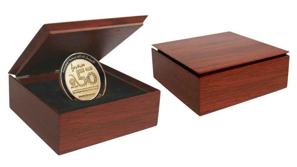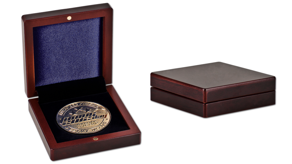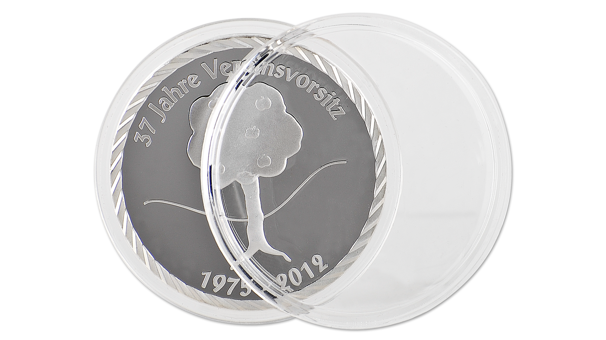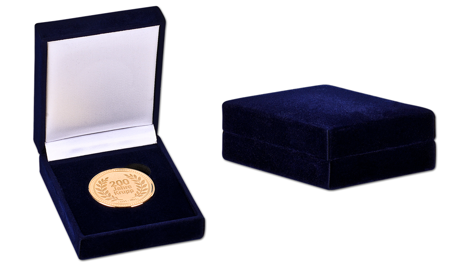 Ob eine Acrylkapsel, die Ihre Münze vor äußeren Einflüssen schützt, oder eine Samtschachtel, die in mehreren Farben erhältlich ist und mit Ihrem Logo bedruckt werden kann.